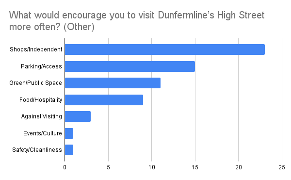 In addition to the predefined choices, respondents had the option to suggest 'other' reasons that would encourage visitors to the high street.