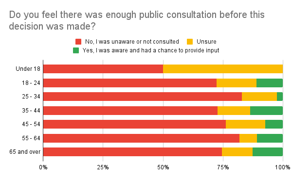 A clear majority felt there had not been enough consultation, reflecting a sense that the project is being delivered to the public, not with them.