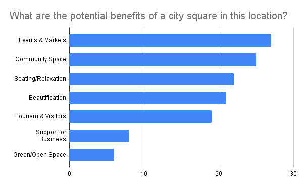 People saw potential in the square as a place for events and markets, a community hub to meet and relax, and a way to brighten up the High Street. Some also felt it could boost tourism and local pride, showing that many do see opportunities if the space is well used.