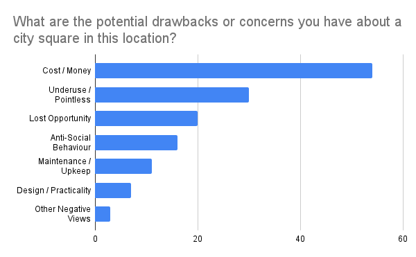 The biggest concern was cost, with many questioning whether the square offers value for money. Others feared it would be underused, a missed opportunity for more ambitious development, or vulnerable to anti-social behaviour and poor upkeep - leaving the risk of it becoming an expensive disappointment.