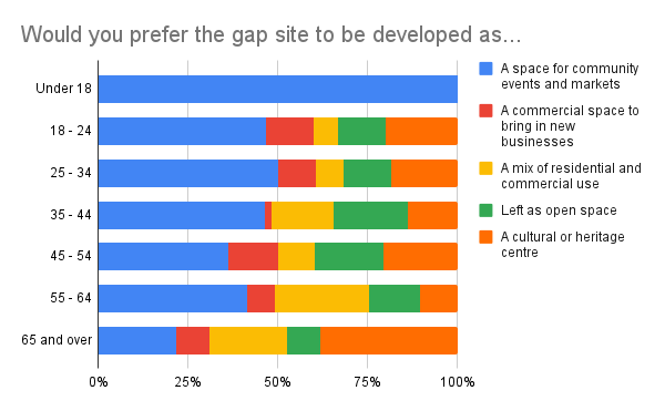 Younger respondents leaned towards food, entertainment, and cultural uses, while older groups favoured heritage or leaving the site alone.