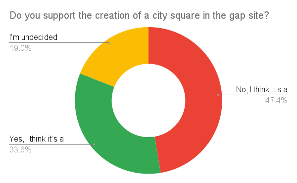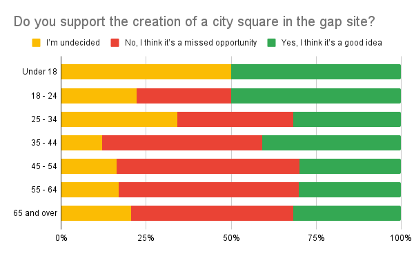 Responses were split between different options, with many favouring something other than a square, including mixed-use development.